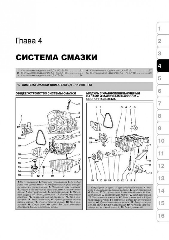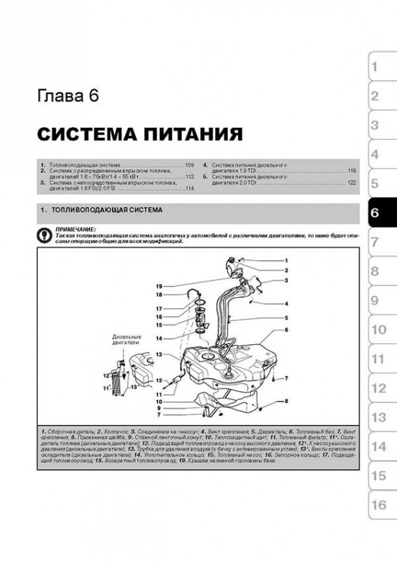 Линейка силовых агрегатов состоит из шести двигателей: четыре бензиновых и два дизельных. Они располагаются поперечно и приводят передние колеса. От предыдущей версии новинка унаследовала два бензиновых двигателя объемом 1,4 л (75 л. с.) и 1,6 л (102 л. с.), а также 1,9-литровый турбодизель TDI (105л. с.). К ним добавились два бензиновых агрегата с непосредственным впрыском FSI объемом 1,6 л (116 л. с.) и 2,0 л (150 л. с.) и еще один турбодизель TDI объемом 2,0 л и мощностью 140 л. с (в данном руководстве, учитывая конструктивную идентичность дизельных двигателей 1.9 TDI и 2.0 TDI, описывается обслуживание двигателя 1.9 TDI).