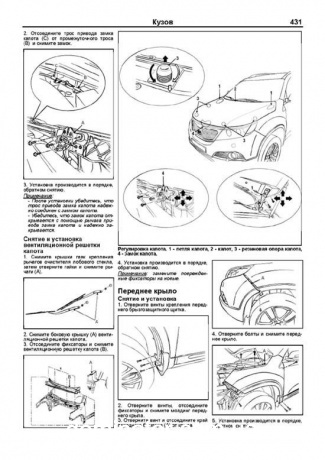 Издание содержит руководство по эксплуатации, подробные сведения по техническому обслуживанию автомобилей, диагностике, ремонту и регулировке элементов систем двигателя (в т.ч. управления бензиновым и дизельным двигателями, топливной системы дизельного двигателя (Common Rail), системы снижения токсичности, турбонаддува, зажигания, запуска и зарядки), элементов механических (МКПП) и автоматических (АКПП) коробок передач, раздаточной коробки (включая систему управления подключением полного привода (4WD)), заднего редуктора, элементов тормозной системы (включая антиблокировочную систему тормозов (ABS), электронную систему распределения тормозных усилий (EBD) и систему курсовой устойчивости (ESP)), рулевого управления, подвески (включая систему контроля давления в шинах), кузовных элементов, систем кондиционирования и вентиляции.